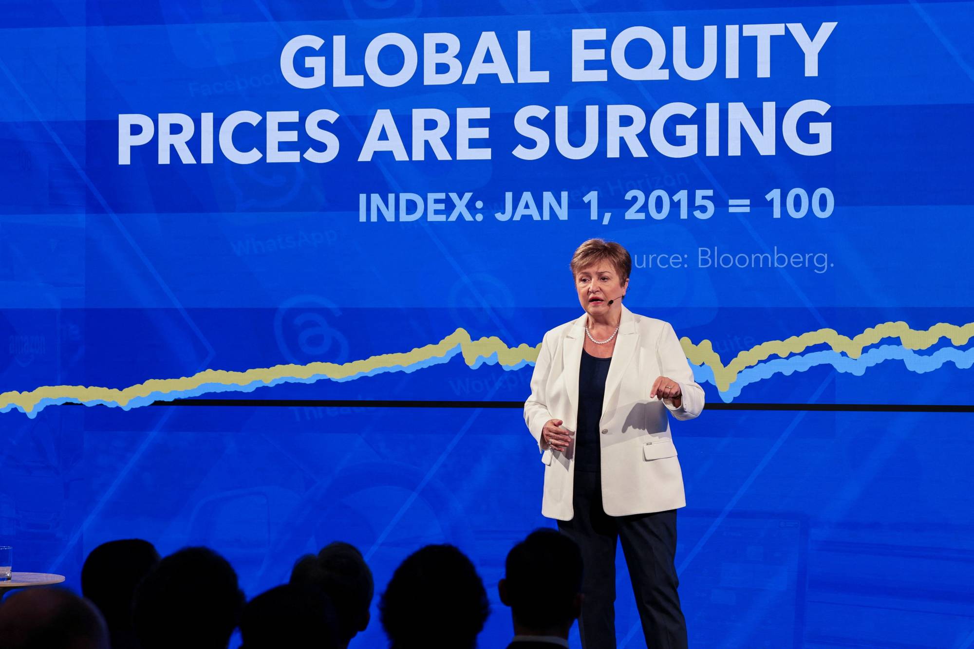 غورغييفا تتحدث قبيل اجتماعات الخريف في معهد ميلكن في واشنطن (رويترز)