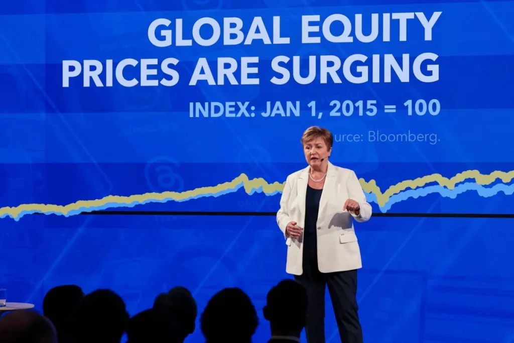 وقالت إن تقييمات الأسواق المالية تتجه أيضاً نحو مستويات شوهدت آخر مرة خلال صعود الإنترنت قبل 25 عاماً. إن أي تحول مفاجئ في المعنويات – كما حدث خلال انهيار شركات الإنترنت في مارس (آذار) 2000 – قد يُبطئ النمو العالمي، ما يجعل الحياة صعبة للغاية على الدول النامية. وقالت: «استعدوا جيداً… عدم اليقين هو الوضع الطبيعي الجديد، وسيبقى كذلك».