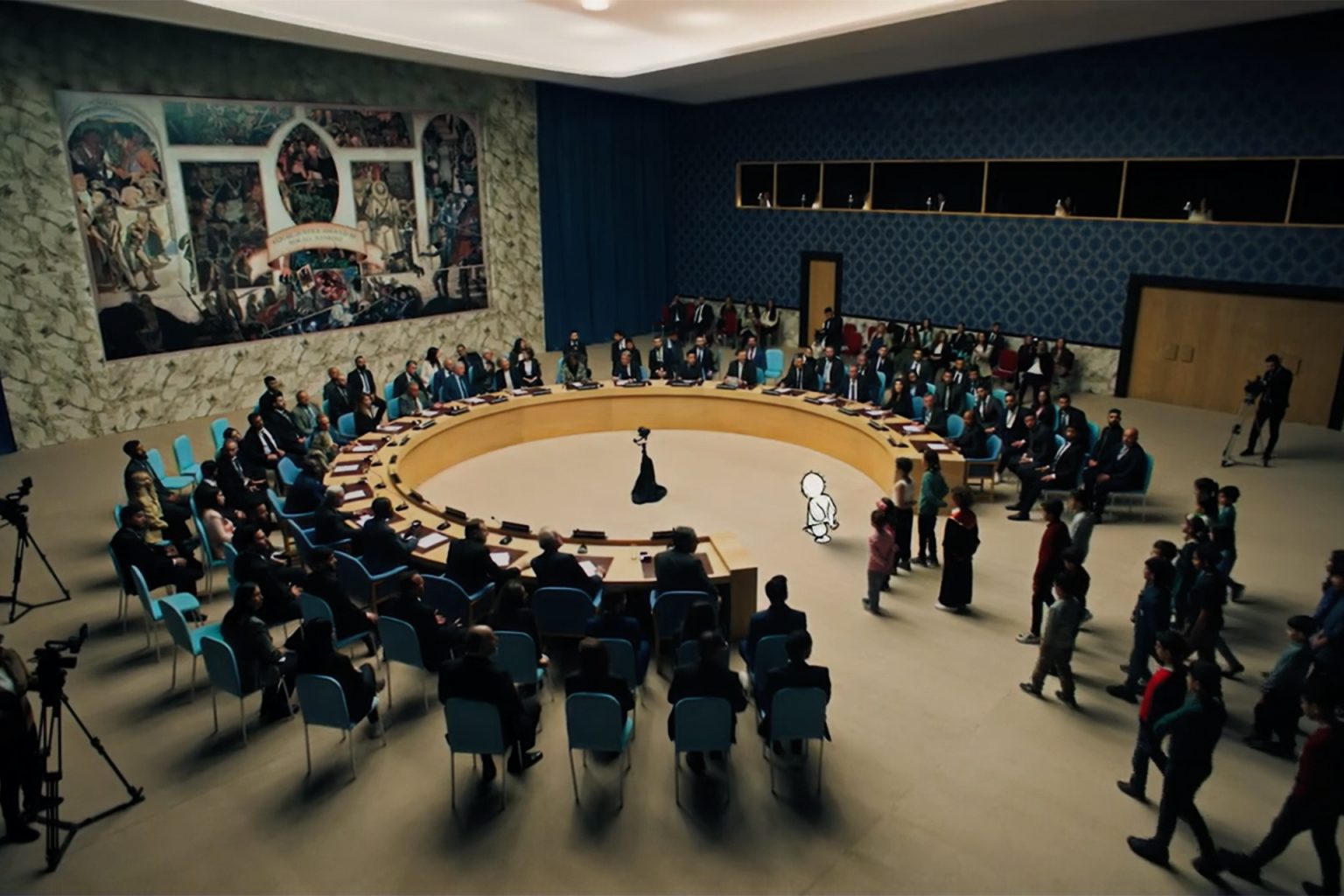 وأظهر الإعلان الترويجي ومدته 4 دقائق “مرافعة تمثيلية” أمام مجلس الأمن ضد ما يحدث في غزة، لأطفال غزة الشهداء وهم يترافعون أمام مجلس الأمن.