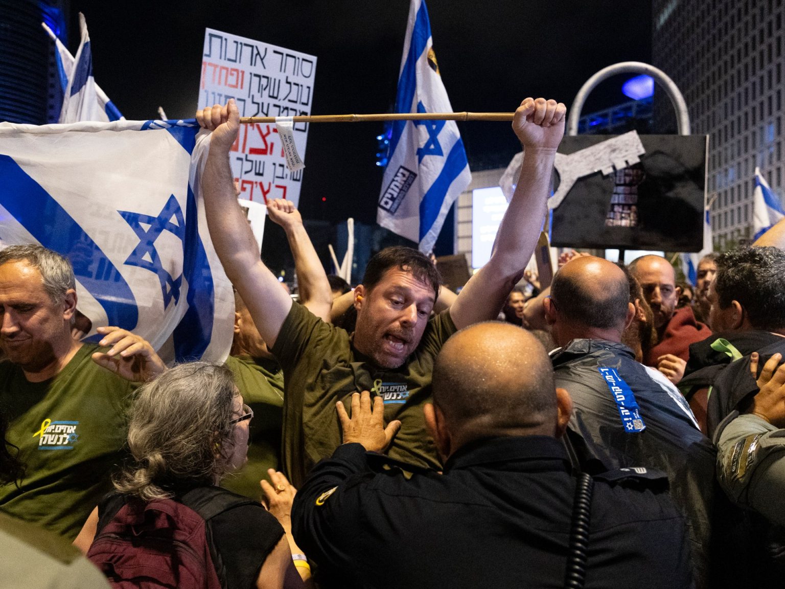 بدروها، قالت وسائل إعلام إسرائيلية إن الشرطة اعتقلت نحو 30 من ذوي الأسرى في غزة ومناصريهم خلال مظاهرة في تل أبيب أمس السبت، ضمن الاحتجاجات المتواصلة التي تطالب الحكومة بإعادة الأسرى وعدم إضاعة الفرصة لإنجاز صفقة تبادل مع المقاومة الفلسطينية.