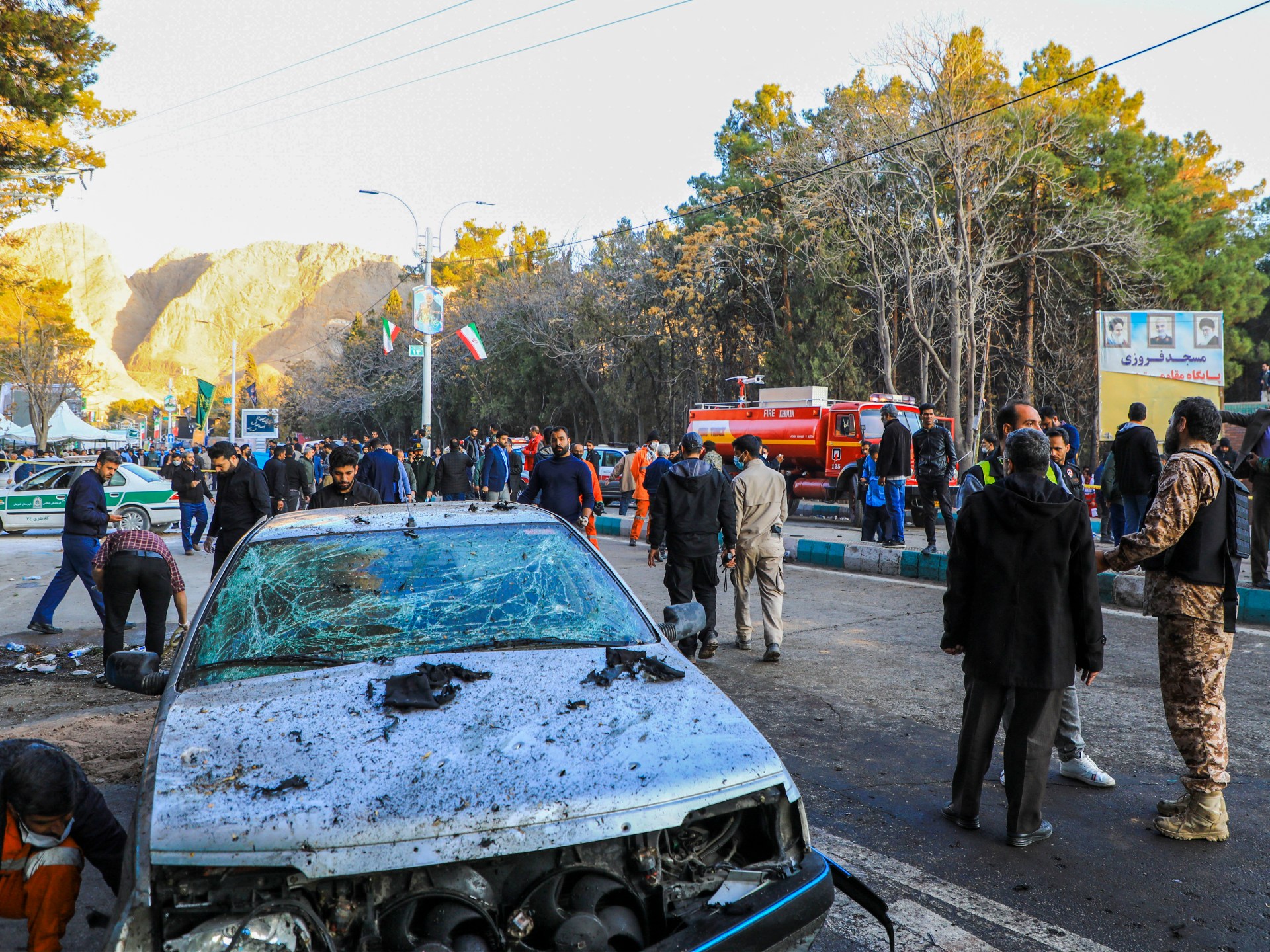 وقتل أكثر من 100 شخص وجرح العشرات في التفجير المزدوج الذي وقع في الثالث من يناير/كانون الثاني الجاري قرب قبر القائد السابق بالحرس الثوري الإيراني قاسم سليماني بمدينة كرمان جنوب شرقي البلاد، أثناء تجمع الحشود لإحياء الذكرى السنوية الرابعة لاغتياله بضربة أميركية.