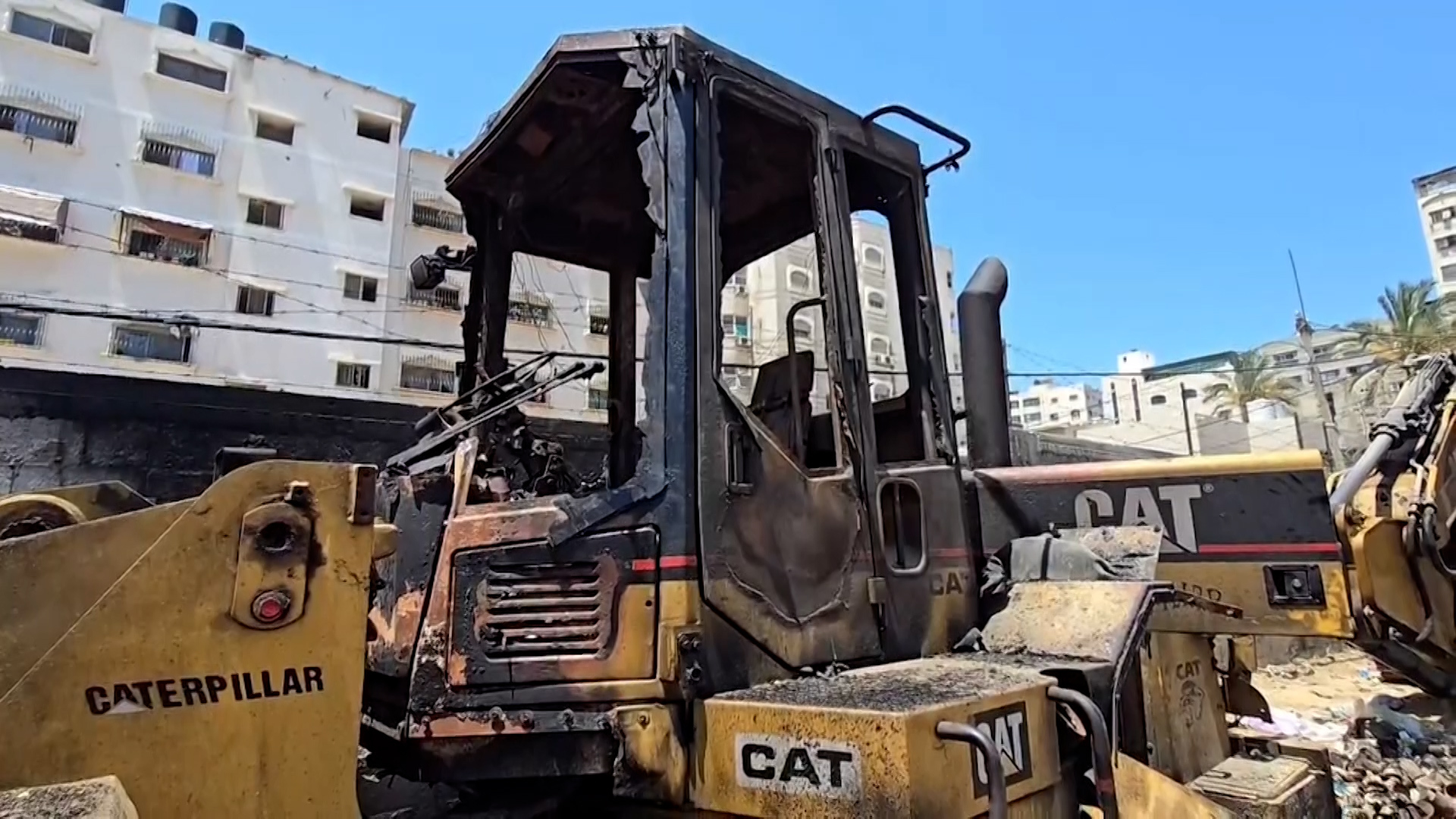 دمرت طائرات مسيرة إسرائيلية -عبر قنابل حارقة- آليات وجرافات تابعة لبلدية غزة، والتي تستخدم في إزالة الركام وأنقاض المباني وفتح الطرقات، وذلك بحي الصبرة جنوبي مدينة غزة.