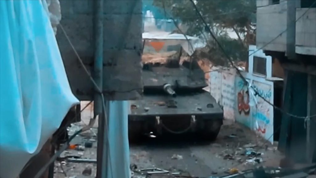 بث الإعلام العسكري التابع لكتائب عز الدين القسام -الجناح العسكري لحركة المقاومة الإسلامية (حماس)- مشاهد من معارك قالت إنها بين مقاتليها والجيش الإسرائيلي شرق حيي التفاح والدرج في غزة.