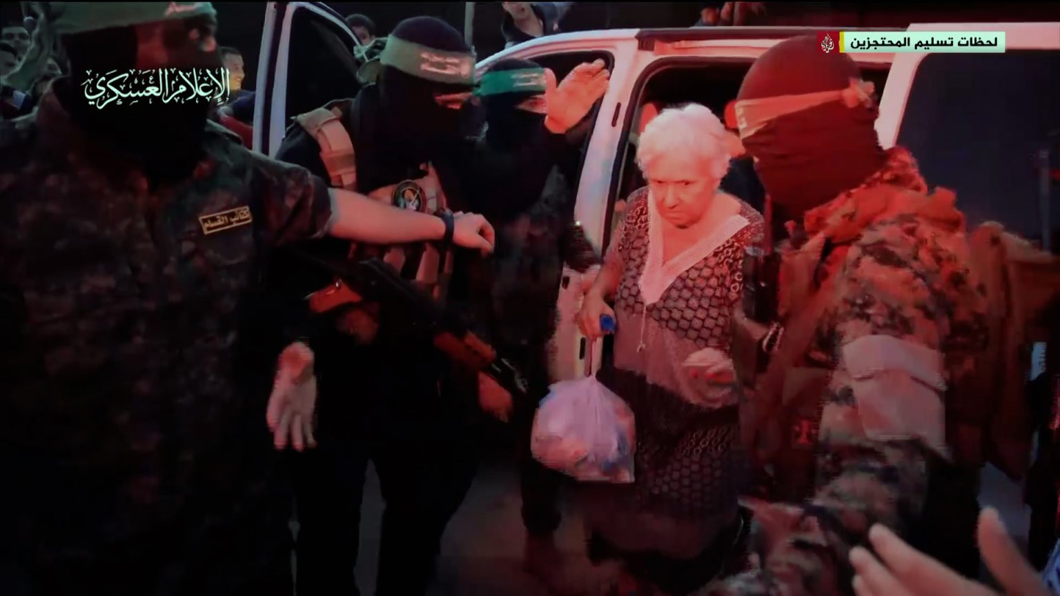 كما أظهرت المشاهد قيام إحدى المحتجزات الإسرائيليات بتحية الكاميرا، كما تمت عملية التسليم في ظل وجود مواطنين فلسطينيين في محيط سيارات القسام والصليب الأحمر.