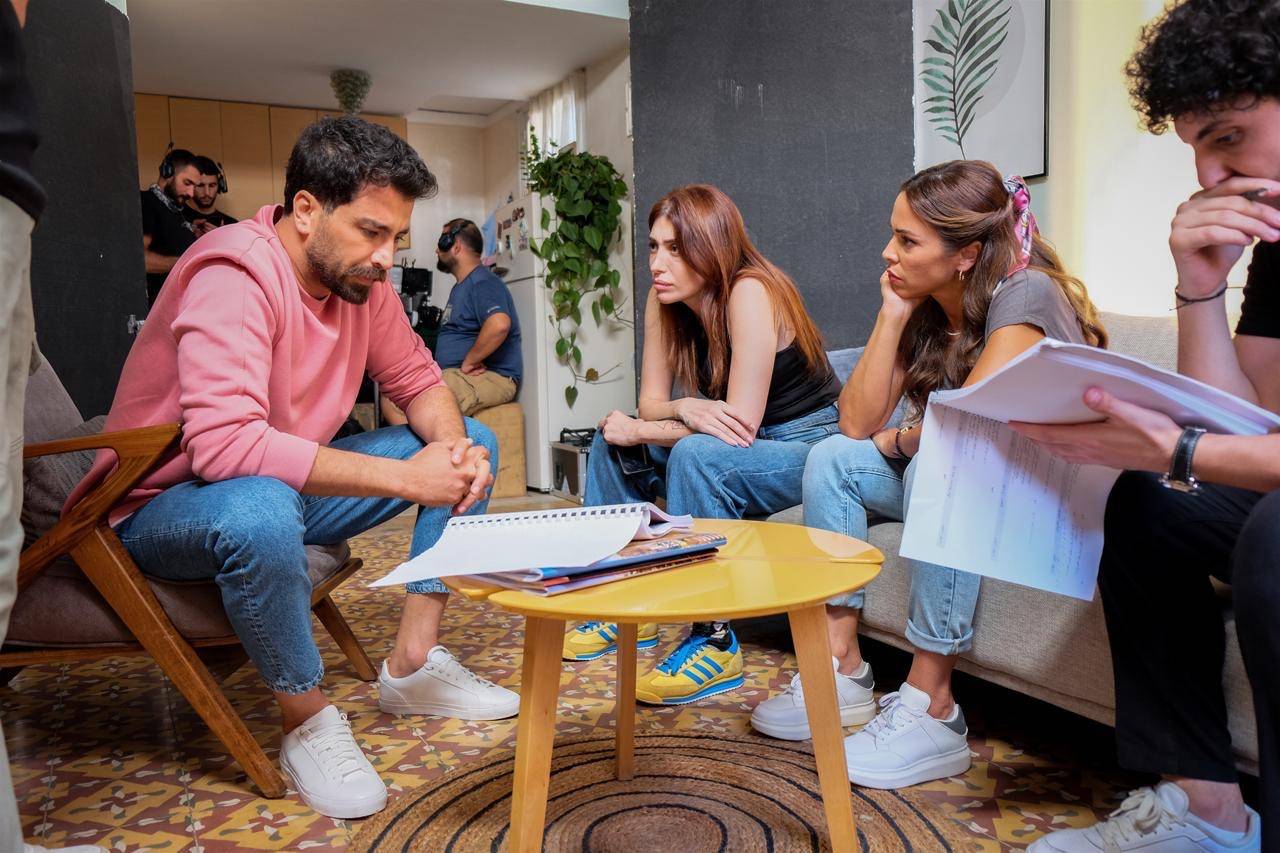 المخرجة ليال راجحة خلال التحضير لمشهد مع معتصم النهار وفريق العمل (صور راجحة)