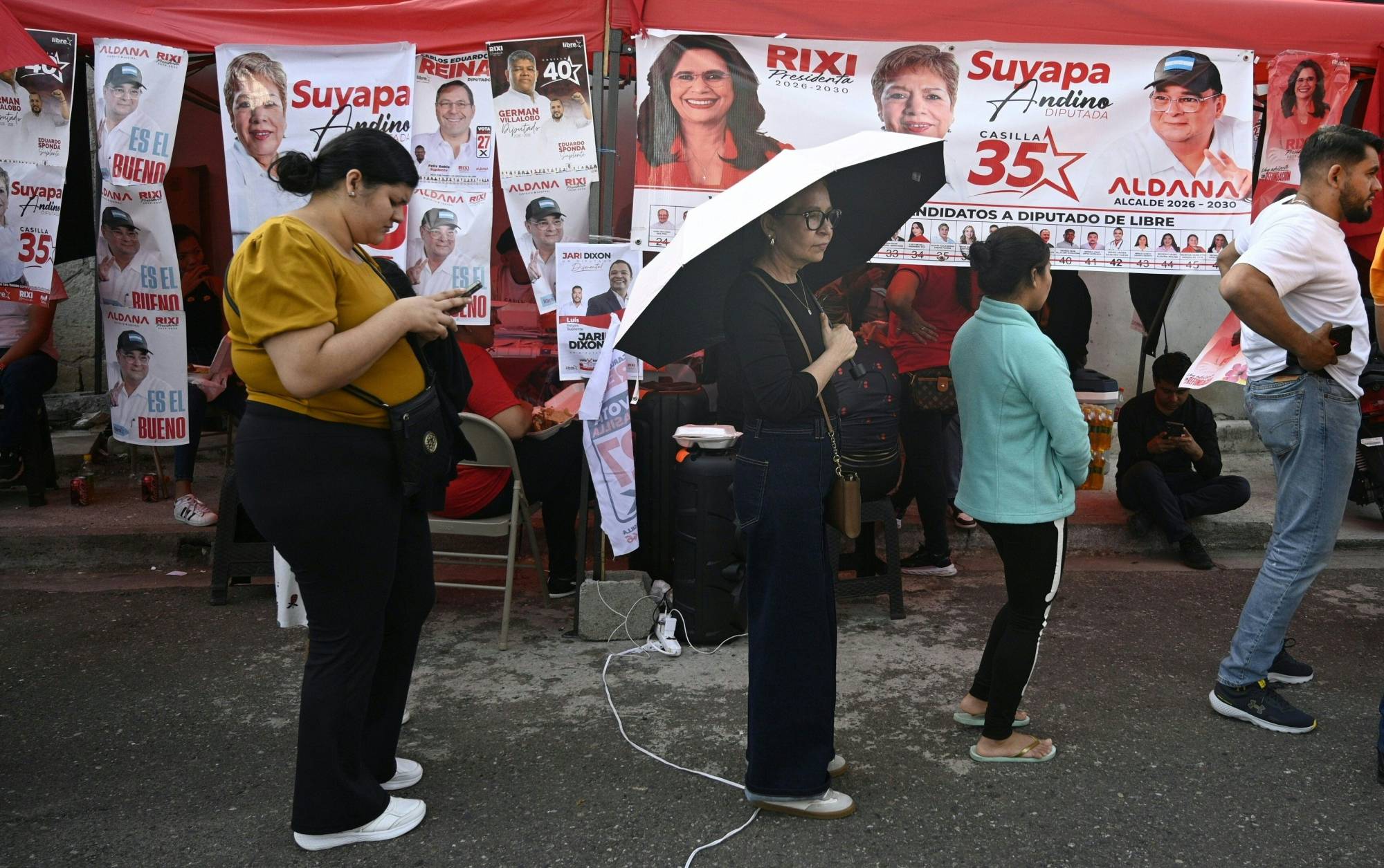 ناخبون ينتظرون للإدلاء بأصواتهم في تيغوسيبالغا الأحد (أ.ف.ب)