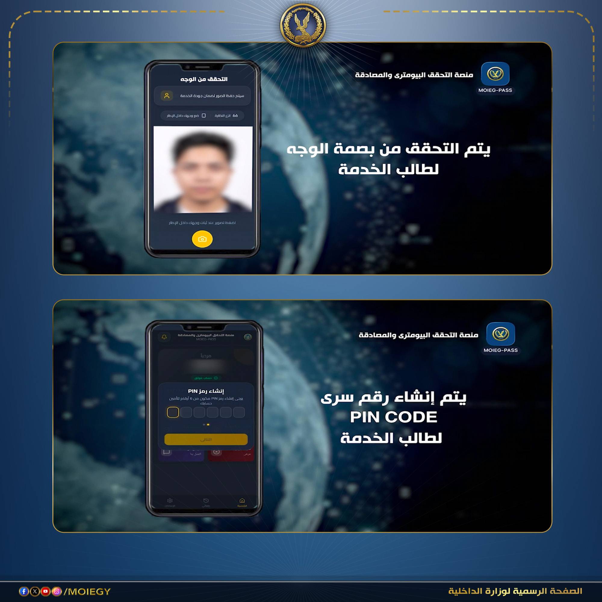وتتيح المنصة خدماتها لجميع المصريين وللجهات المختلفة من خلال «تحميل التطبيق الخاص بالتحقق البايومتري والمصادقة «MOIEG-PASS» الموجود على الهواتف الذكية».