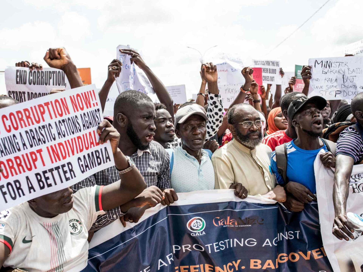 وتأتي الاحتجاجات وسط اتهامات لمؤسسات حكومية بارتكاب مخالفات مالية، من بينها إدارة أزمة كورونا، وشبهات باختلاس داخل هيئة إدارة ميناء غامبيا.