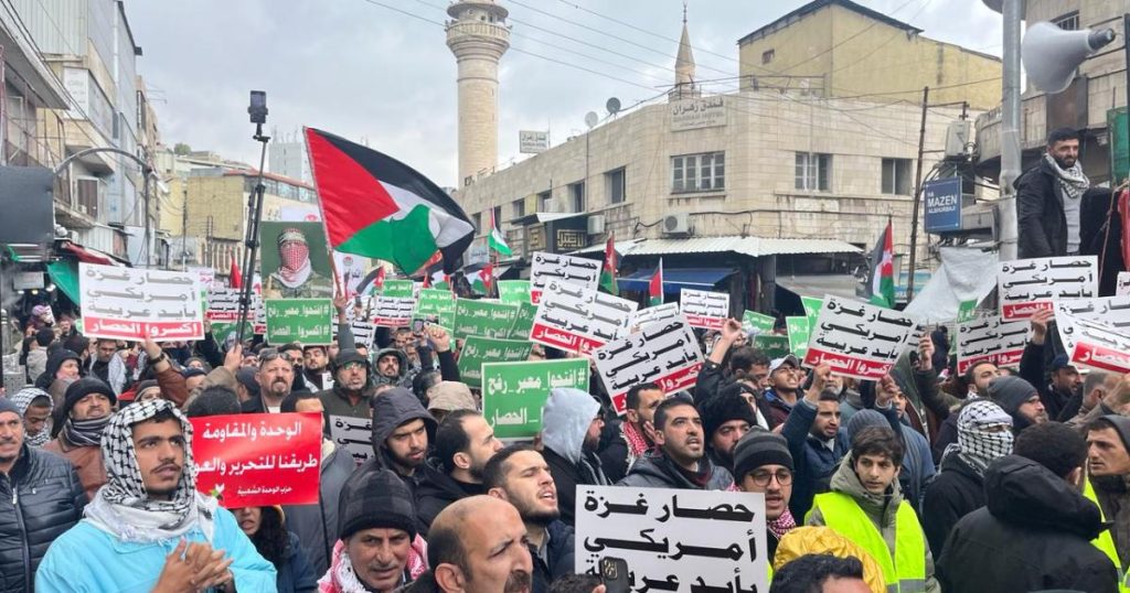 وتابع مراسل الجزيرة أن المظاهرات في الأردن تطالب أيضا بإلغاء اتفاقية وادي عربة للسلام مع إسرائيل وقطع كافة العلاقات السياسية والاقتصادية معها.