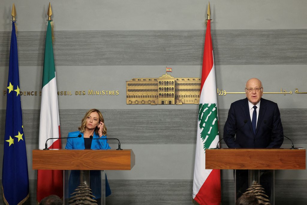 قال رئيس الوزراء اللبناني نجيب ميقاتي ورئيسة الوزراء الإيطالية جورجيا ميلوني إنهما اتفقا على أن الحل الدبلوماسي يجب أن يكون له الأولوية على العنف والدمار، وأكدا الحاجة للتنفيذ الكامل للقرار الدولي 1701.