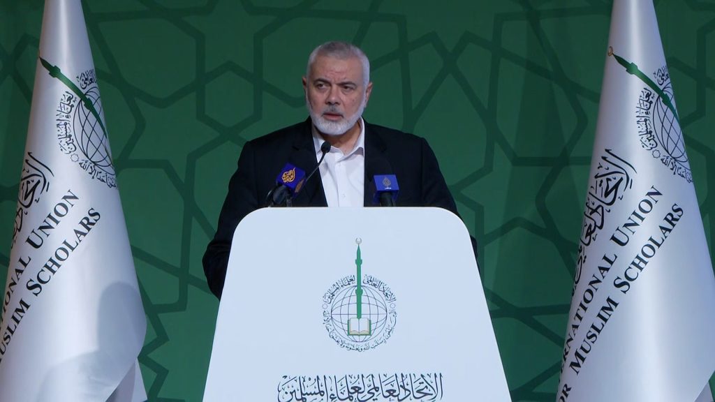 وأضاف هنية -في كلمة له بمؤتمر للاتحاد العالمي لعلماء المسلمين– “يجب أن يكون دور الأمة وعلمائها كبير على محور دعم المقاومة، في حين نرى أن دول العالم تصب السلاح إلى الاحتلال عبر جسور جوية وحاملات طائرات، وآن الأوان لدعم المقاومة بالسلاح، لأن هذه معركة الأقصى، وليست معركة الشعب الفلسطيني وحده”.