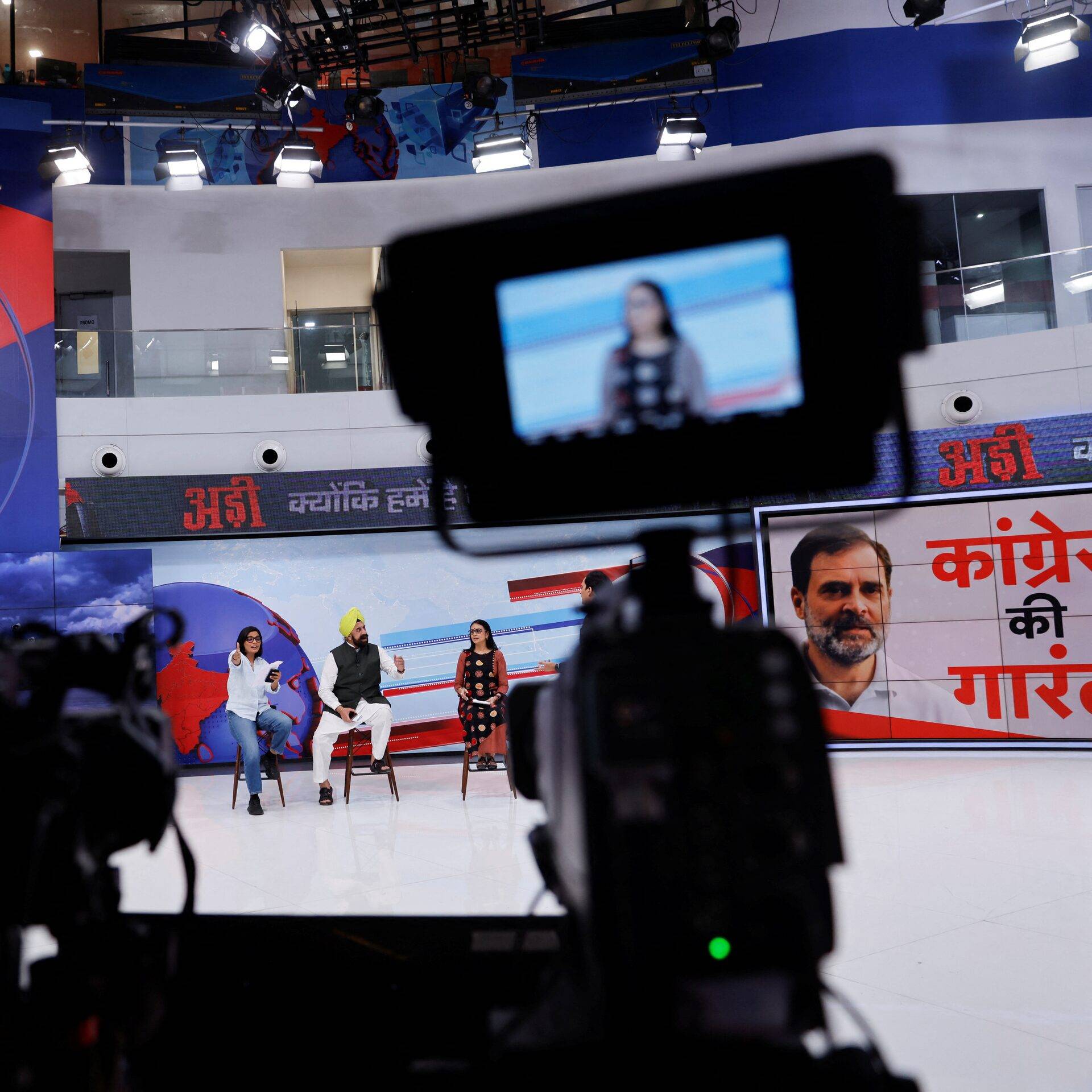 جلسة نقاشية في إحدى محطات التلفزيون الهندية (رويترز)