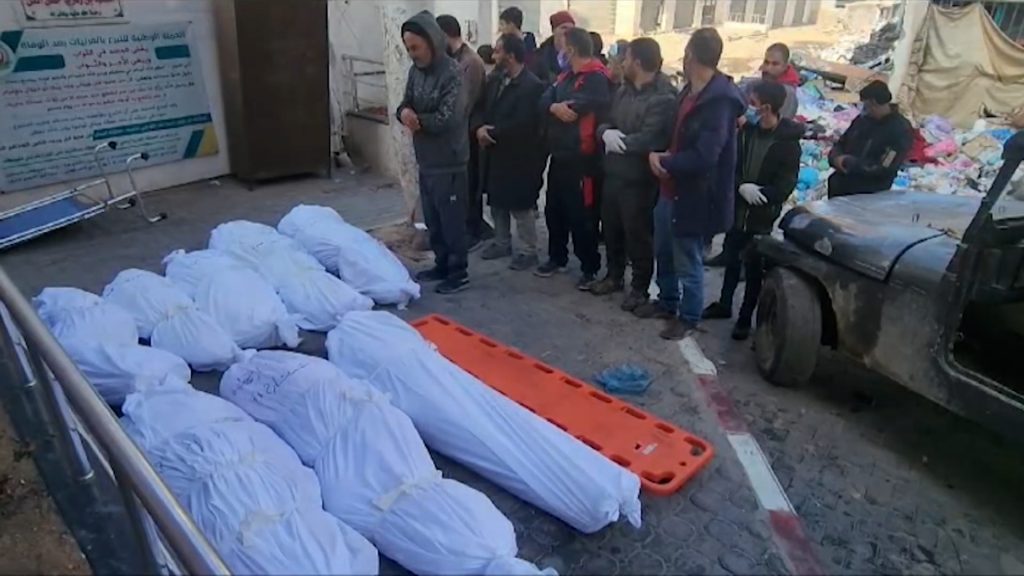 تفقدت والدة الطفلة الفلسطينية هند رجب جثمان ابنتها بعد وصوله إلى مستشفى الشفاء في مدينة غزة. وقالت إن ابنتها استشهدت منذ أسبوعين في السيارة، ولم تتحرك منظمات حقوق الإنسان الدولية لإنقاذها، رغم مناشدتها لهم.
