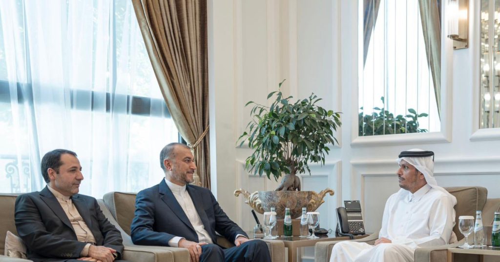 استقبل رئيس الوزراء القطري وزير الخارجية الشيخ محمد بن عبد الرحمن آل ثاني اليوم الأربعاء في الدوحة وزير الخارجية الإيراني حسين أمير عبد الهيان حيث استعرضا آخر التطورات في الأراضي الفلسطينية المحتلة وسبل خفض التصعيد ووقف إطلاق النار في قطاع غزة.