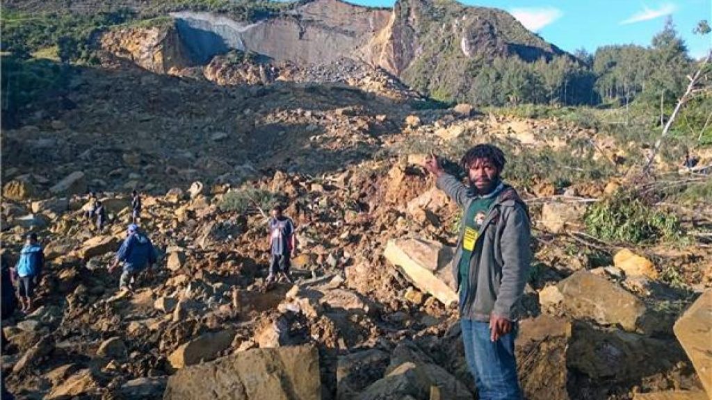 وذكرت هيئة الإذاعة الأسترالية أن الانهيار الأرضي ضرب قرية كاوكالام في مقاطعة إنجا، على بعد حوالي 600 كيلومتر شمال غرب بورت مورسبي عاصمة الدولة الجزيرة الواقعة جنوب المحيط الهادئ، في حوالي الساعة الثالثة صباحًا بالتوقيت المحلي (15:00 بتوقيت غرينتش).