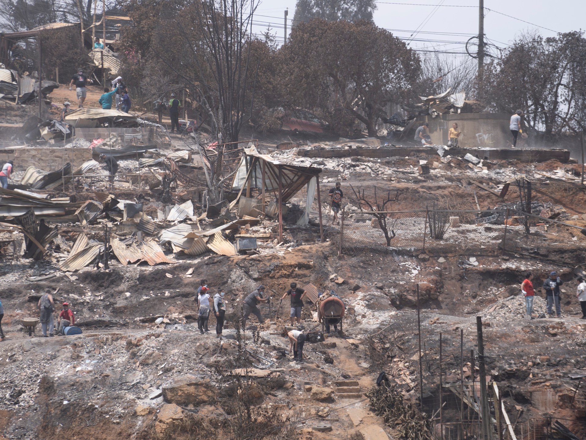 وتجتاح منطقة فالبارايسو وسط تشيلي “أكبر مأساة” عرفتها البلاد منذ 20 عاما، وأظهر مقطع بطائرة مسيرة في فينيا ديل مار أحياء كاملة أتت عليها النيران، في حين يبحث السكان وسط حطام منازل محترقة، وتناثرت سيارات محترقة في الشوارع.