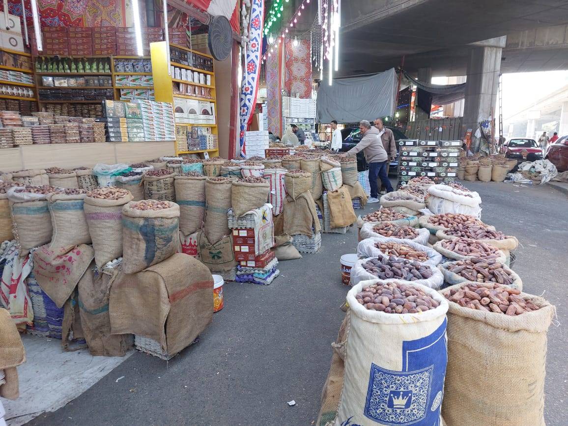 أحد جوانب هذا المشهد يمكن رصده على كورنيش النيل؛ حيث توجد «سوق الساحل»، أقدم أسواق بيع البلح، إذ نصب التجار شوادرهم التي تتراص بداخلها أجولة البلح، وتتزين أرففها بأنواع الياميش، إلا أن التوافد على السوق ليس مثل الأعوام السابقة.