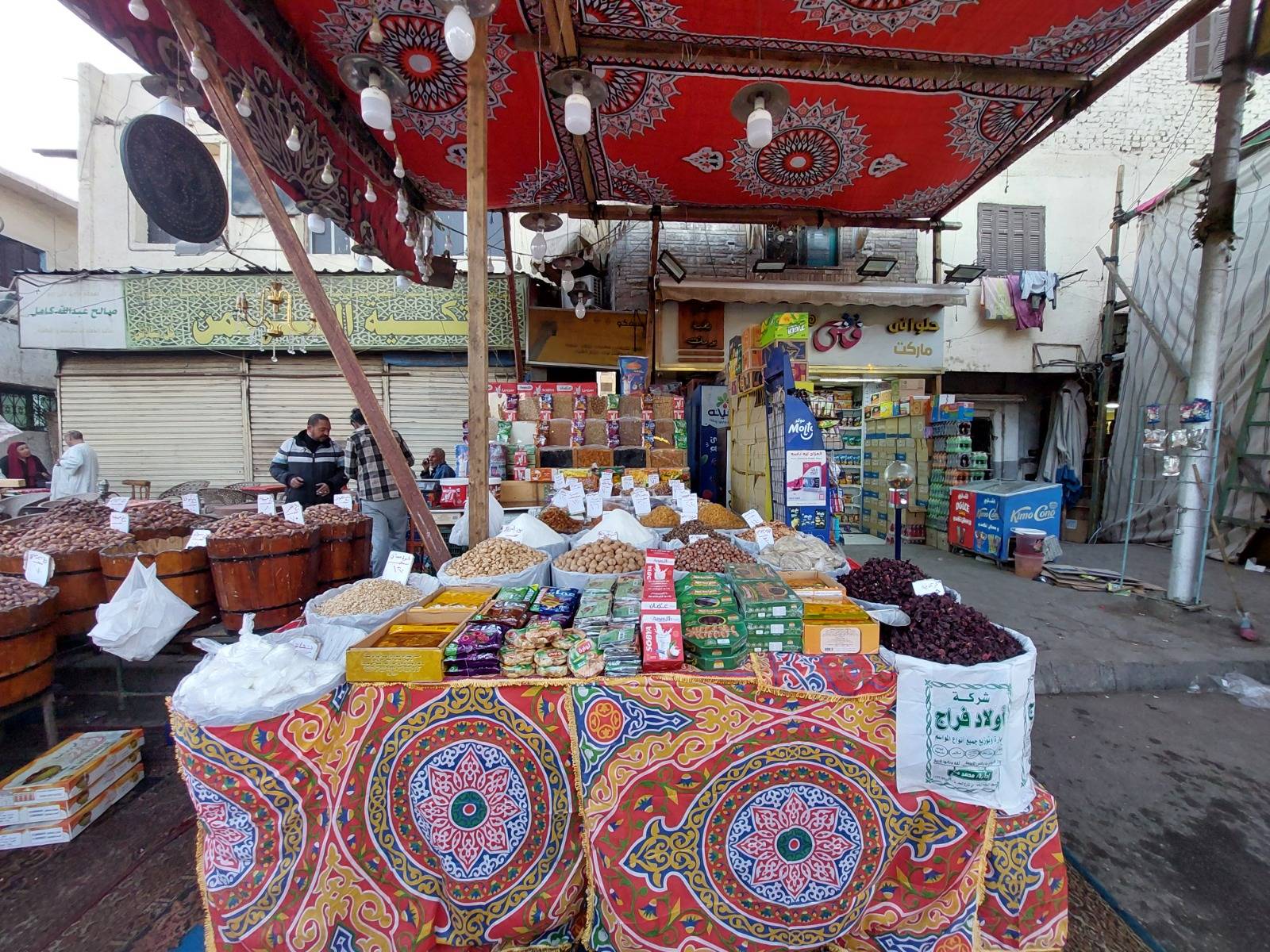 ​في الجهة المقابلة، يعرض إسلام سيف، تاجر الياميش «لوحة رمضانية» تضم أصنافاً متعددة من الزبيب، والفستق، وقمر الدين، والقراصيا (البرقوق المجفف)، والمشمشية، والتين المجفف، وجوز الهند، والبندق، وعين الجمل. ورغم تعدد منتجاته فإنه يصف الإقبال عليها بـ«الخفيف»، مُرجعاً السبب إلى ارتفاع الأسعار مقارنة بالعام الماضي نتيجة زيادة تكاليف استيرادها.
