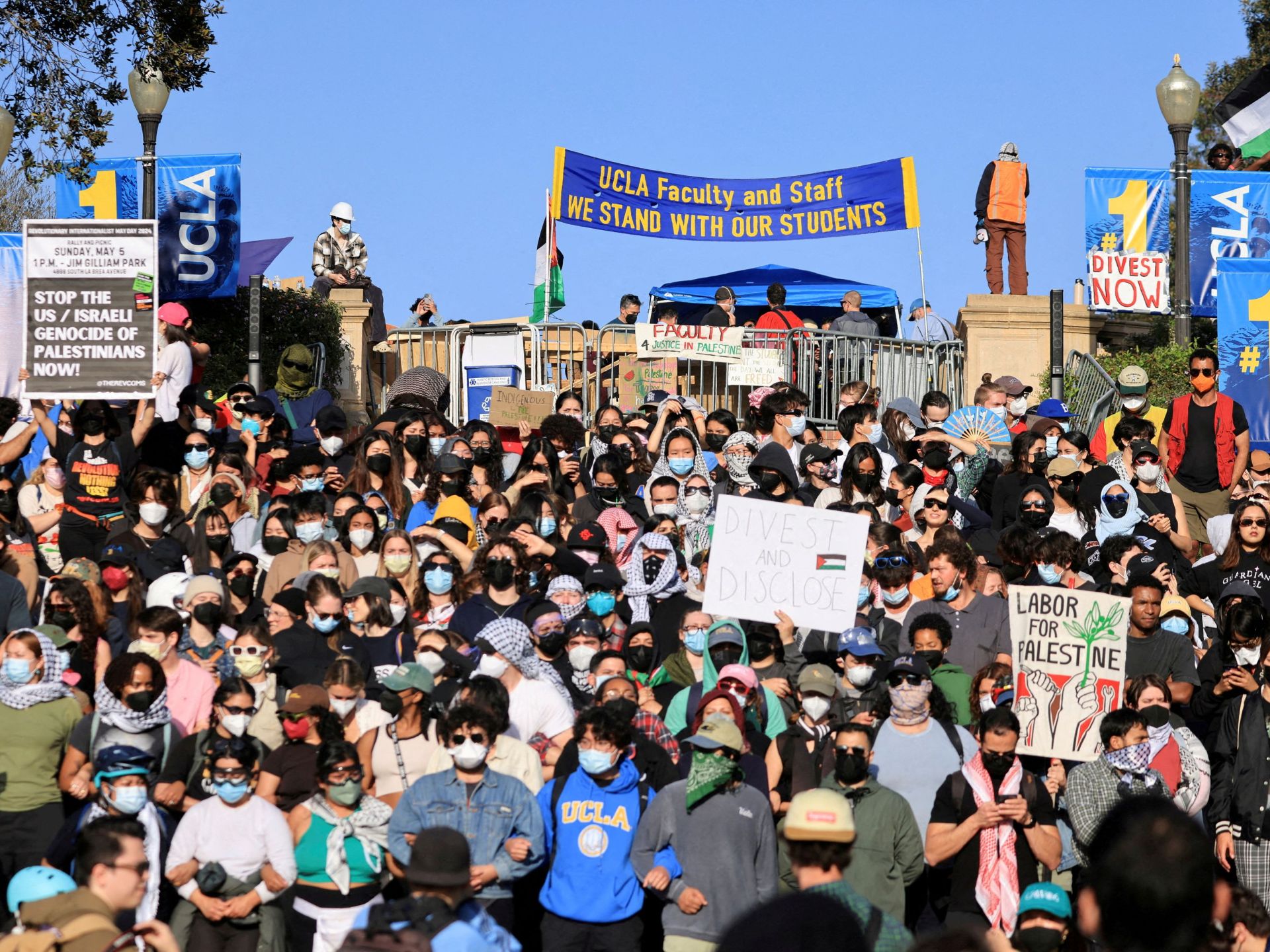 ففي جامعة كاليفورنيا في لوس أنجلوس، منع الطلاب المؤيدون للفلسطينيين زملاءهم الذين أقروا بأنهم صهاينة من دخول أجزاء من الحرم الجامعي، وفقا لبيرنستاين.