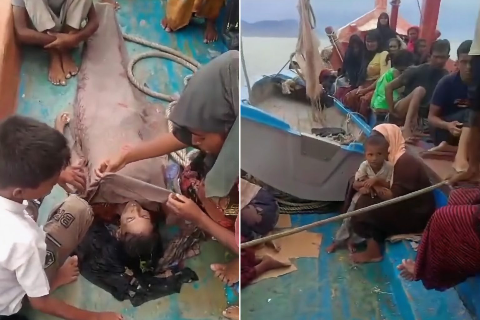 ووفق التسجيل نفسه، فإن اللاجئين دخلوا المياه الإندونيسية منذ أكثر من أسبوع، ساعين للجوء إلى جاكرتا هربا من الأوضاع الصعبة في مخيماتهم ببنغلاديش في أوضاع طقس صعبة مع نفاد موادهم الغذائية. ويُظهر إحدى اللاجئات مسجاة على سطح القارب بعد وفاتها، بسبب الجوع والمرض تاركة أطفالها أيتاما مع غيرهم من اللاجئين، وفق ما نقله النشطاء للجزيرة نت.