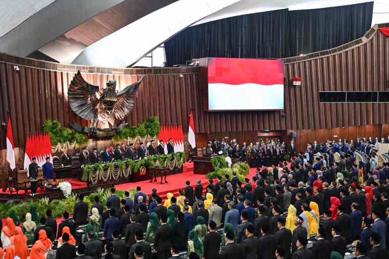 جاكرتا- أدى الرئيس الإندونيسي المنتخب الجنرال المتقاعد برابوو سوبيانتو (73 عاما) اليمين الدستورية، اليوم الأحد، ليصبح الرئيس الثامن لإندونيسيا، تحت قبة مجلس الشعب الاستشاري بجاكرتا في ظل حضور رسمي إقليمي ودولي واسع، بعد نحو 8 أشهر من الانتخابات التي فاز فيها بـ58.58% من الأصوات، وسط نقاشات بشأن ما ستكون عليه السياسة الخارجية للبلاد في عهد الرئيس الجديد.