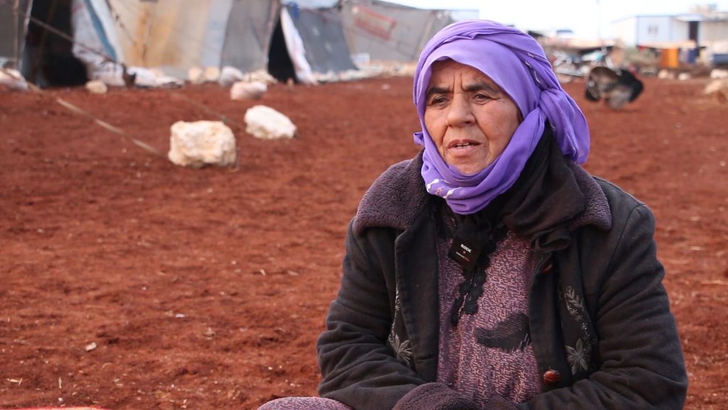 نجت المسنة بشرى المحمد من الموت عدة مرات خلال نزوحها إلى شمال إدلب (الجزيرة)