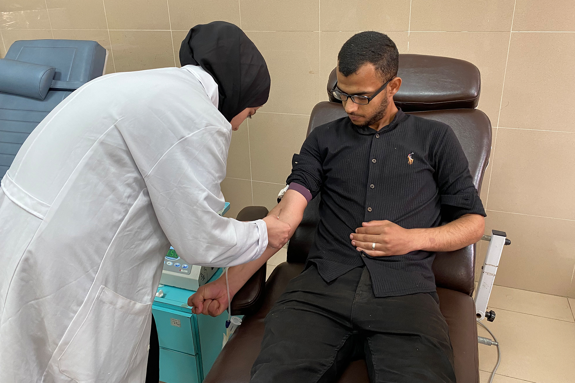 أحد هؤلاء شاب في العشرينيات من عمره، بجسد تبدو عليه الصحة، حضر قبل بضعة أيام للتبرع بالدم، وبعد دقائق معدودة من جلوسه على المقعد المخصص وهو ينظر إلى أنبوب متصل بكيس طبي يُفترض أن يمتلئ بوحدة الدم، ظهرت عليه فجأة علامات التعب الشديد وبدأ يتصبب عرقا وأُصيب بالغثيان والدوخة.