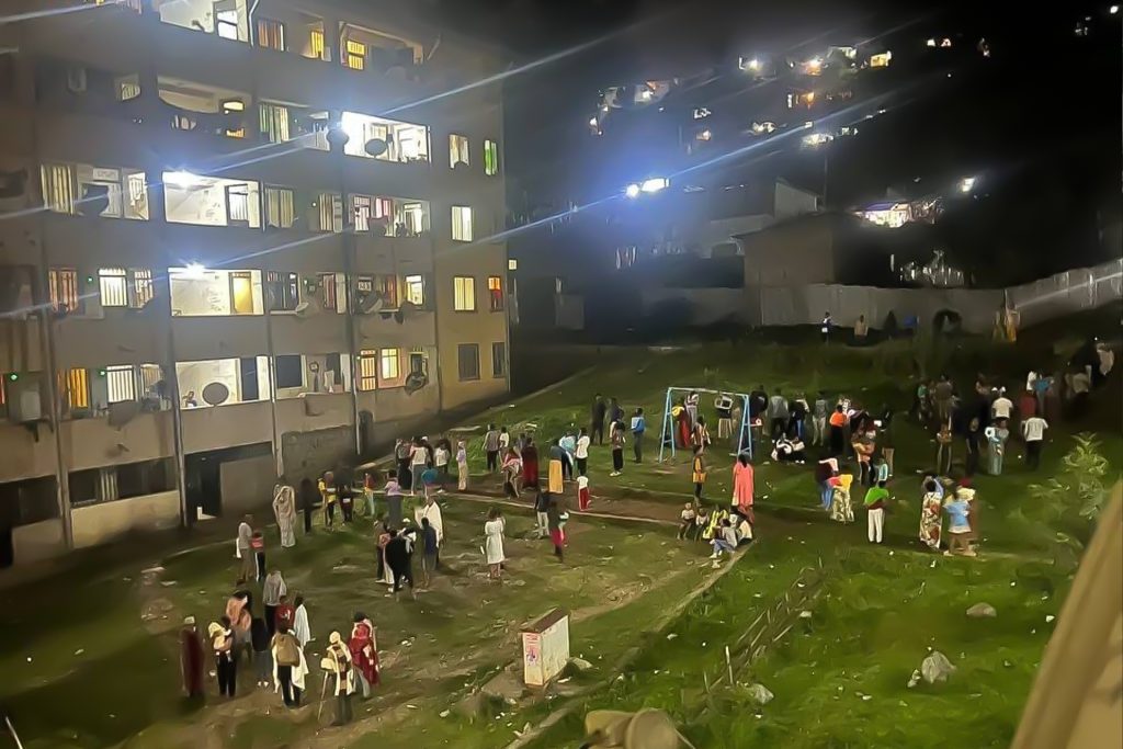 هذا المشهد لم يكن استثناء في هذا المجمع، فقد شمل مجمعات سكنية عديدة بعدما امتدت الهزات الأرضية لتضرب أجزاء واسعة من أديس أبابا، مسببة الذعر بين السكان الذين أخلوا منازلهم بدافع القلق.