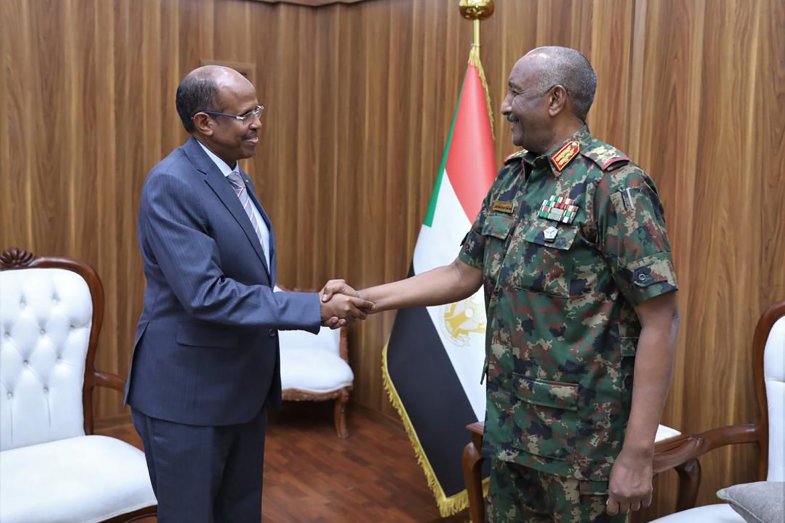 وأوضح وزير الخارجية السوداني حسين عوض أن نقاشا “مطولا” دار بين البرهان ومبعوث الرئيس الجيبوتي حول “الأخطاء والمنعرجات السلبية” التي اتخذتها المنظمة تجاه الأزمة في السودان.