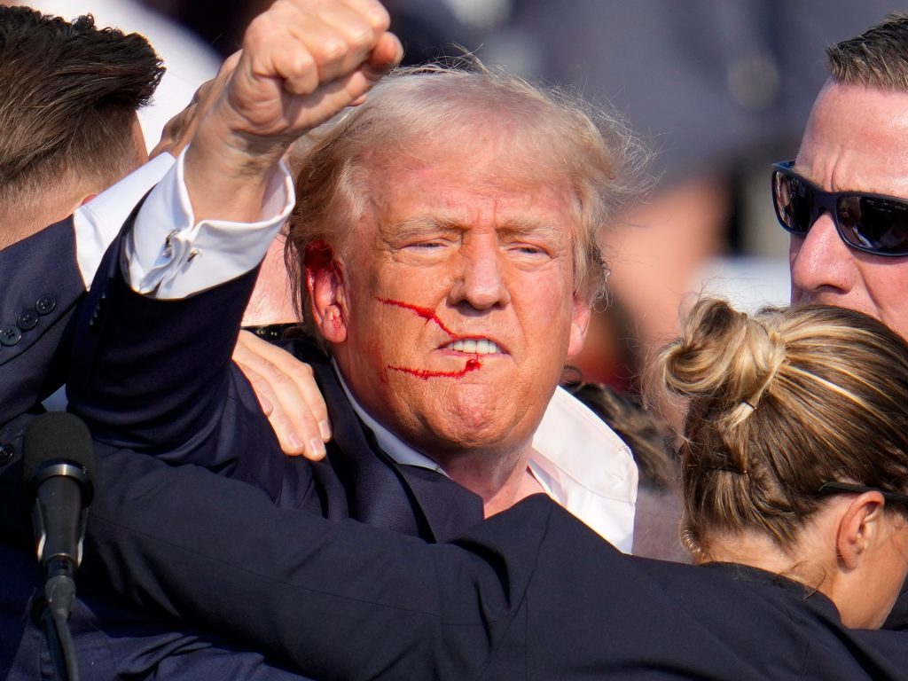في 13 يوليو/تموز 2024، كان ترامب في اجتماع في باتلر بولاية بنسلفانيا. وكان يخطب على المسرح عندما أطلق رجل من سطح مبنى مجاور عدة طلقات من بندقية هجومية من طراز “آي آر-15″، مما أسفر عن مقتل شخص من الجمهور ونجاة ترامب بأعجوبة بعدما أصابت الرصاصة أذنه.