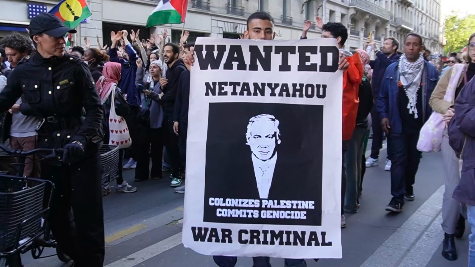 وعلى بعد أقل من كيلومتر واحد من مبنى السفارة الإسرائيلية، هتف المتظاهرون بشعارات “كلنا أطفال غزة” و”غزة حرة” و”ماكرون متواطئ” و”كل الأعين على رفح”، رافعين الأعلام الفلسطينية ولافتات كتب عليها “نتنياهو وبايدن مجرمو حرب” و”جحيم إسرائيل”.