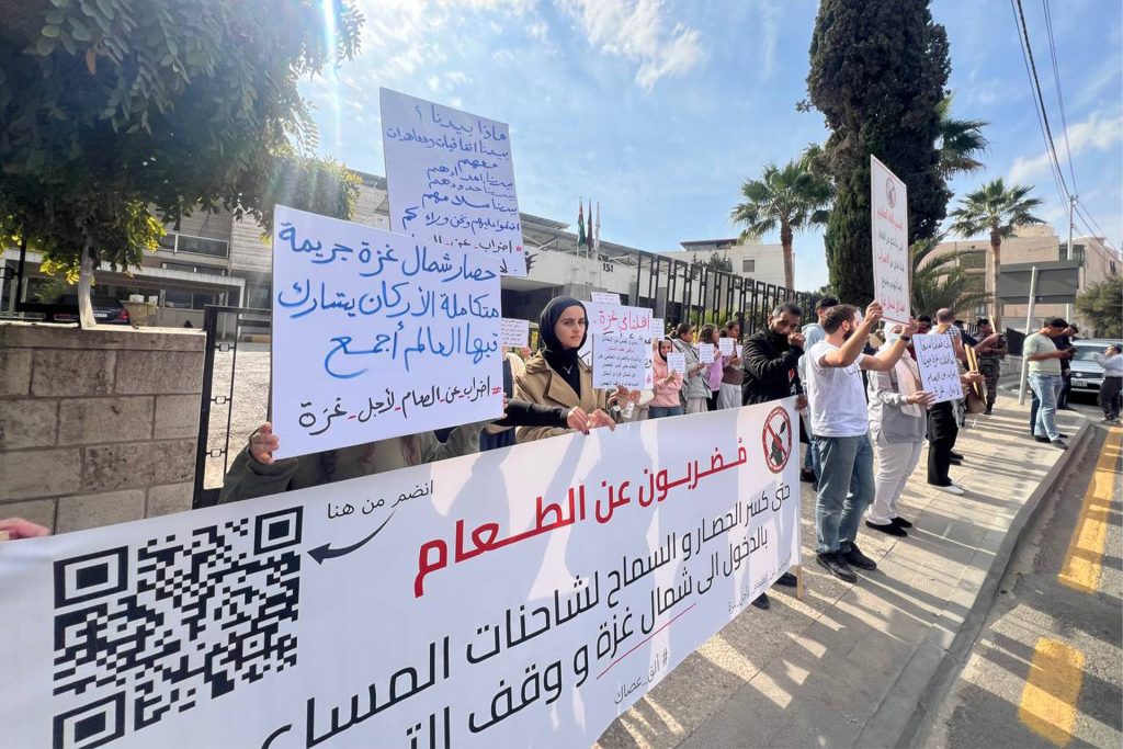 عمّان- أعلن عشرات الشبان والشابات الأردنيين عن دخولهم في إضراب مفتوح عن الطعام، ضمن حملة عالمية تحت شعار “ألقِ عصاك”، للمطالبة بكسر الحصار المفروض على شمال قطاع غزة، وإدخال المساعدات، وصد مخطط تهجير السكان منه.