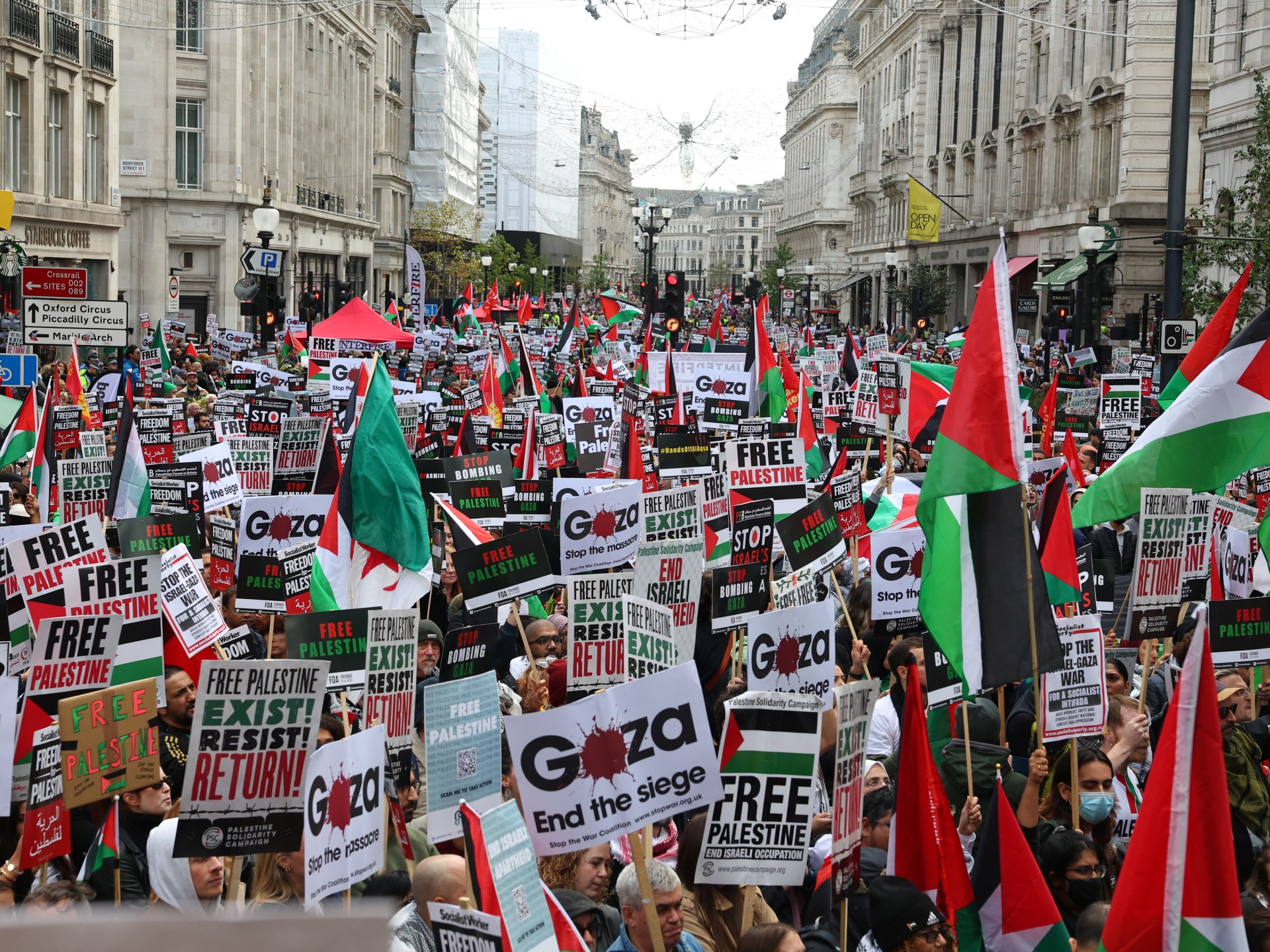 وأضاف أنه -رغم أن رئيس الوزراء ريشي سوناك، وكير ستارمر (زعيم حزب العمال) أكبر أحزاب المعارضة، يدعمان إسرائيل بحماسة، إلا أن ضاحية بوري بارك بمنطقة لوتون العمالية الفقيرة تبرز صورة أخرى. ففي كل مكان بها رُفعت الأعلام الفلسطينية، في محلات البرغر ومتاجر المجوهرات وملابس الزفاف والأثاث.