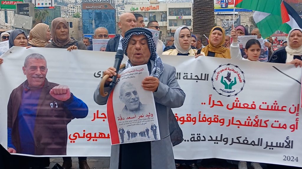 من جهته، قال مظفر ذوقان رئيس اللجنة العليا لدعم الأسرى بنابلس المنظمة للفعالية إن الاحتلال عمد ومنذ أصيب الأسير دقة بالسرطان إلى استهدافه طبيا، ومنعه من تلقي الرعاية الصحية، وحمَّل المؤسسات الحقوقية، خاصة الدولية وتلك التي تعنى بالأسرى المسؤولية، وأكد أنهم “شركاء في الجريمة التي يرتكبها الاحتلال بحق الأسرى، خاصة المرضى منهم”.