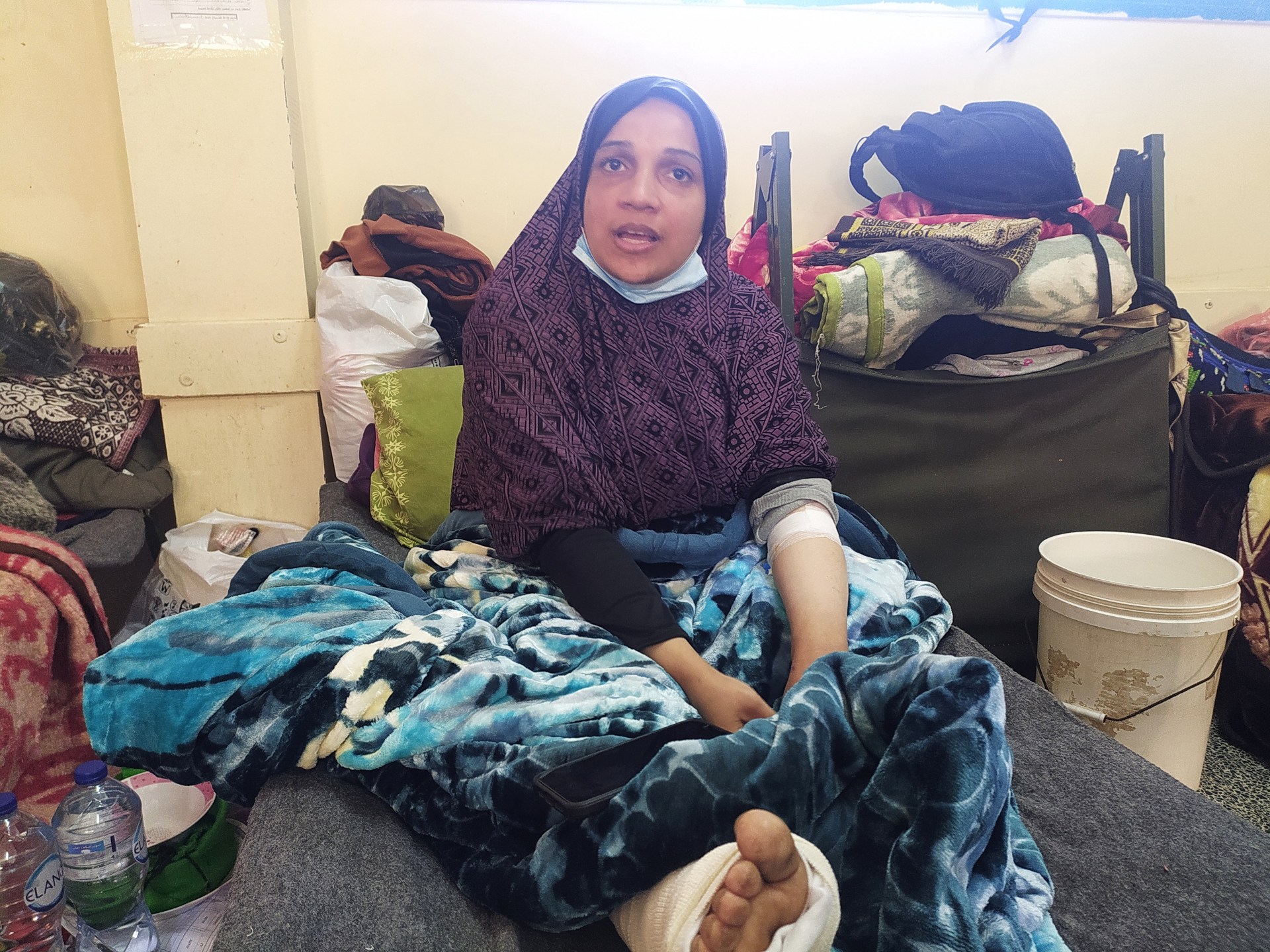 وعلى سرير متهالك في مدرسة جنين الثانوية القريبة من مستشفى غزة الأوروبي، شمال شرقي مدينة رفح، ترقد ولاء وقد لفت ساقها بالجص، لكسور أصابتها جراء سقوط عامود خرساني عليها، وتشكو من تردي الرعاية الطبية، وتخشى ألا تتمكن من السير على قدميها مرة أخرى.