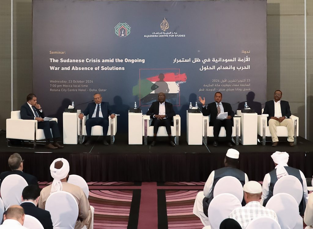 نظَّم مركز الجزيرة للدراسات ومنتدى الفكر العربي بعمّان ندوة بحثية في العاصمة القطرية الدوحة، أمس الأربعاء، تحت عنوان “الأزمة السودانية في ظل استمرار الحرب وانعدام الحلول”. شارك فيها اللواء الركن المتقاعد أسامة محمد أحمد عبد السلام، الخبير الأمني والعسكري، والدكتور حسن حاج علي، الباحث الأول في مركز دراسات النزاع والعمل الإنساني بقطر، والدكتور صلاح الدين الزين، المدير السابق لمركز الجزيرة للدراسات وعضو منتدى الفكر العربي، والدكتور محمد السيد، الناشط الحقوقي، وأدارها المذيع بقناة الجزيرة مباشر مصطفى عاشور.