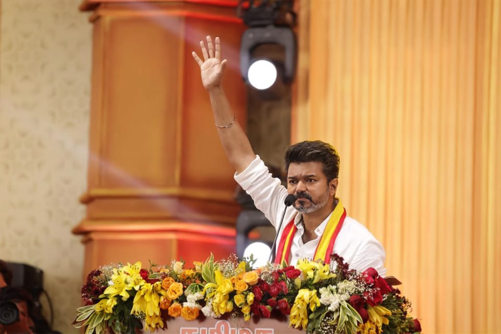 في خطوة وُصفت بأنها ضربة للحزب الحاكم في تاميل نادو، عقد فيجاي المؤتمر الأول لحزبه “تاميلغا ويتريك كالاغام” الأحد الماضي بمشاركة نحو 250 ألفا من أنصاره بالولاية.