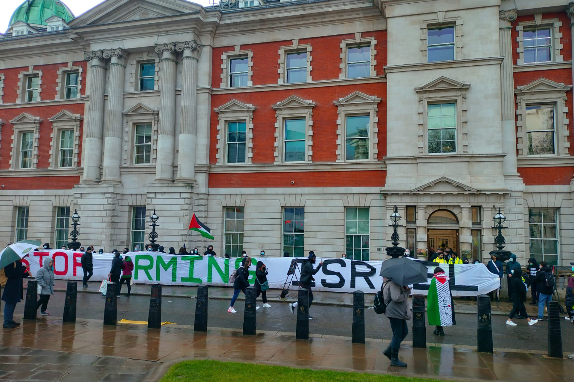 نشطاء يحاصرون وزارة الأعمال البريطانية احتجاجًا على تسليح إسرائيل
