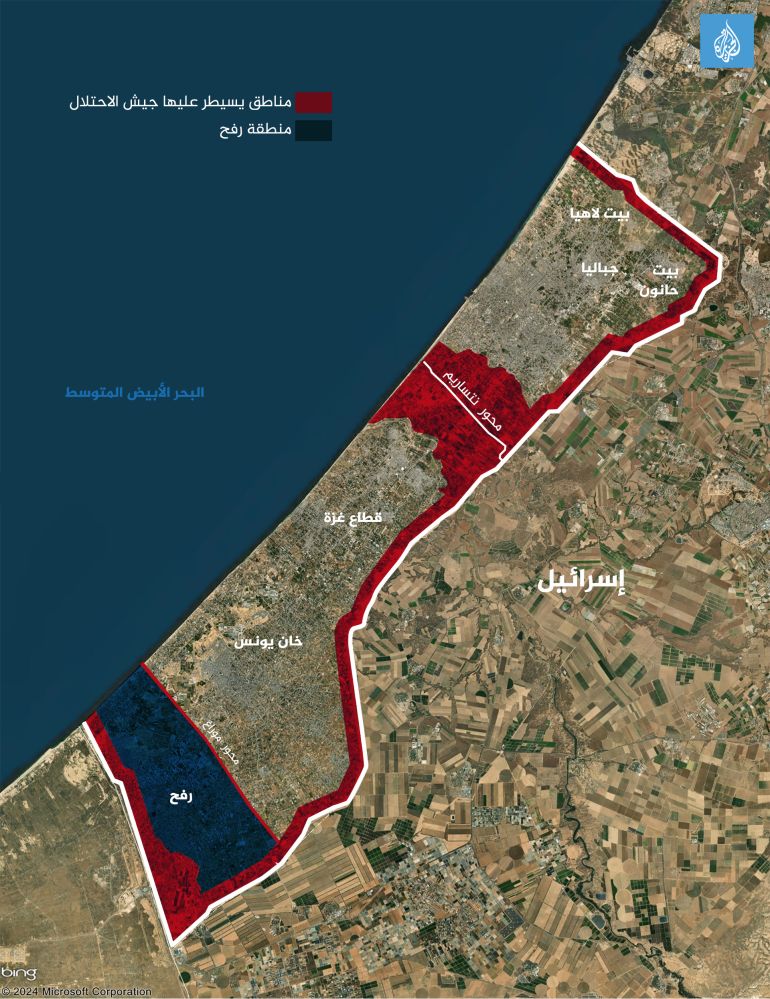 تصميم يُظهر المناطق التي أعلن الاحتلال تحويلها إلى منطقة عازلة في غزة (الجزيرة)