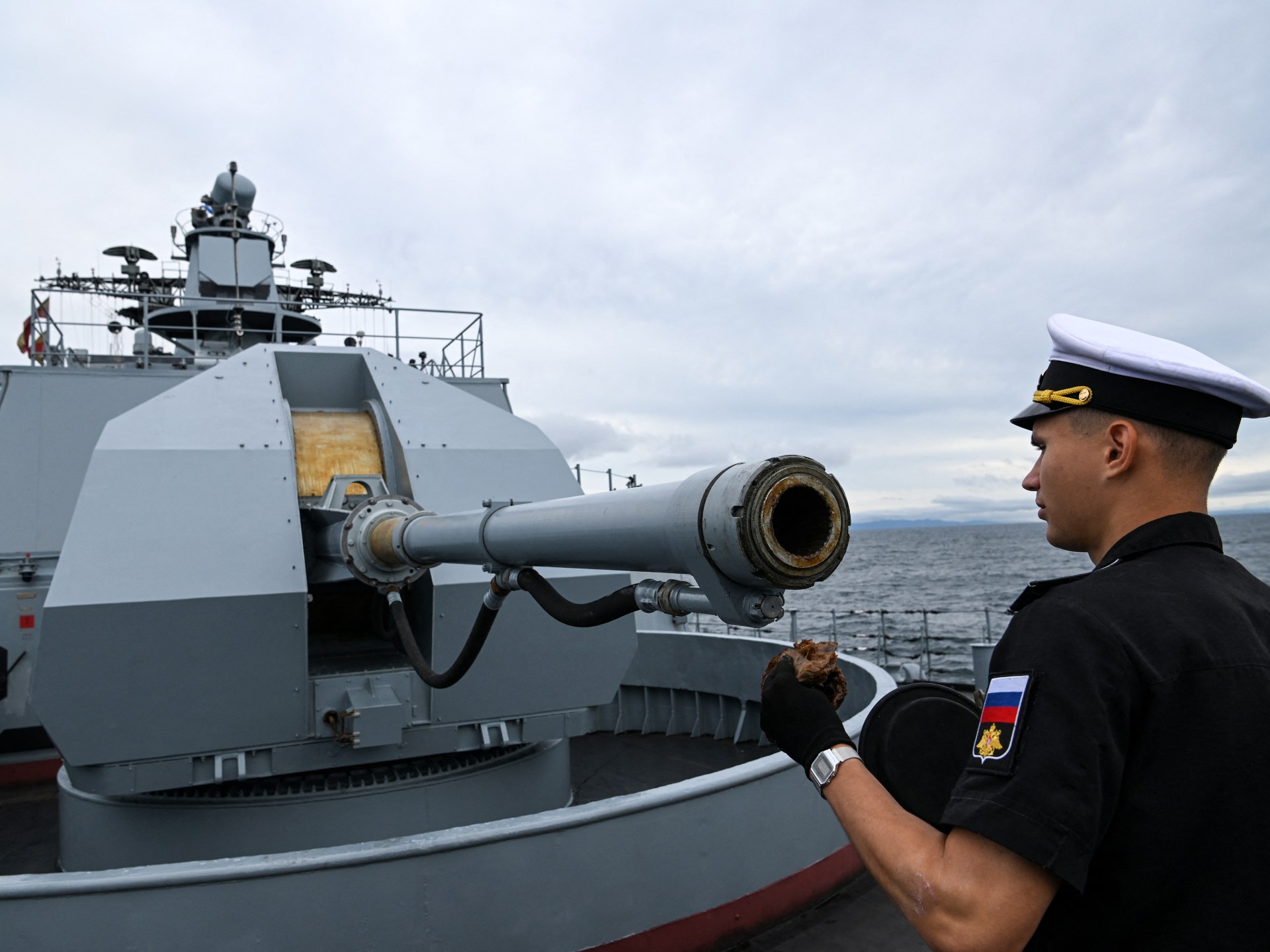 عملية إطلاق صاروخ مضاد للغواصات من “المارشال شابوشنيكوف” الروسية في مناورات سابقة (رويترز)