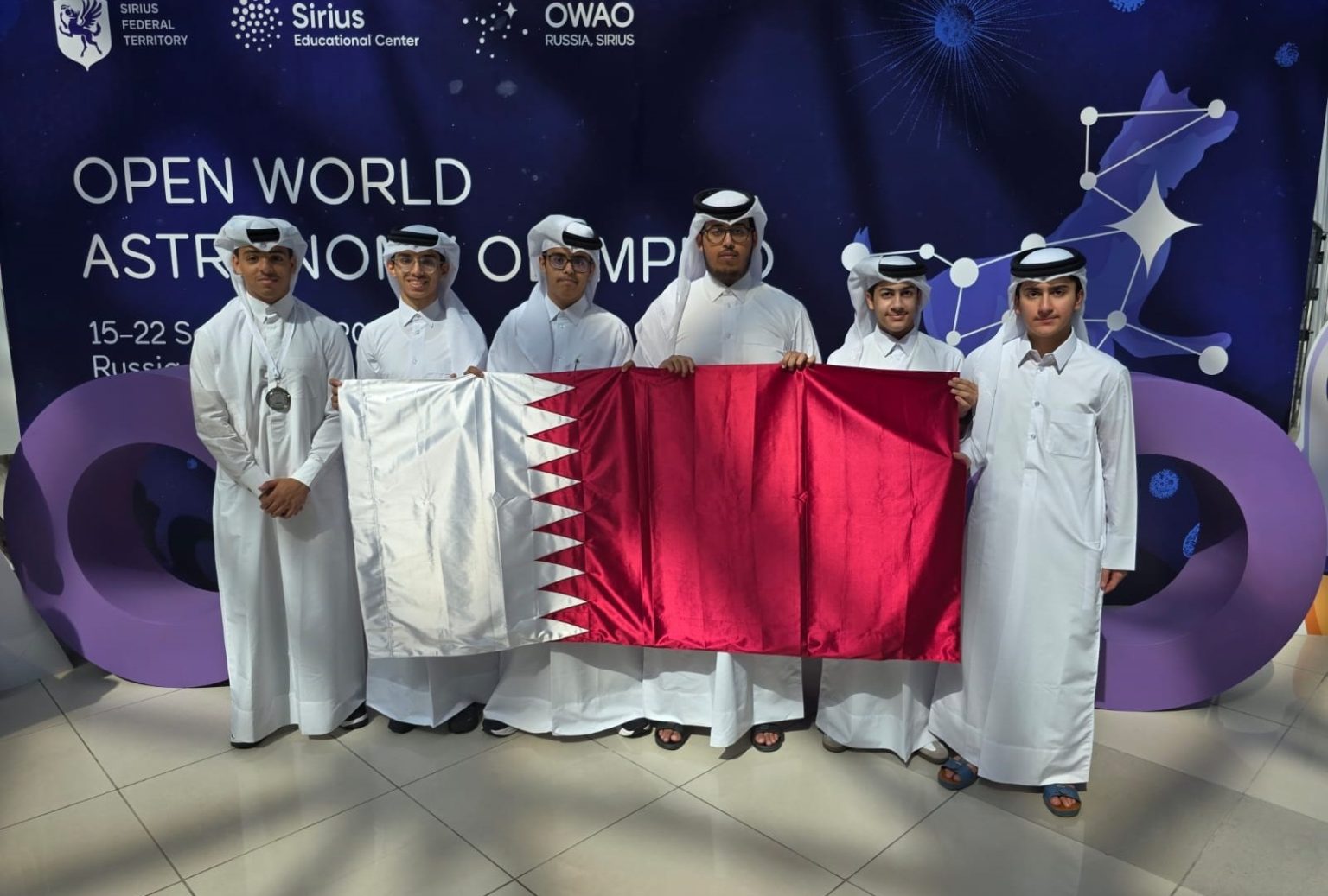 الدوحة- حمل فريق قطري مكون من 6 طلاب بالمرحلة الثانوية في دولة قطر رحالهم بمدينة سوتشي جنوب روسيا للمشاركة لأول مرة في أولمبياد الفلك الدولي المفتوح، في نسخته الثالثة الذي أقيم خلال الفترة من 15 إلى 22 سبتمبر/ أيلول الماضي، ليحقق 4 منهم جوائز متعددة من بينها الميدالية الفضية.