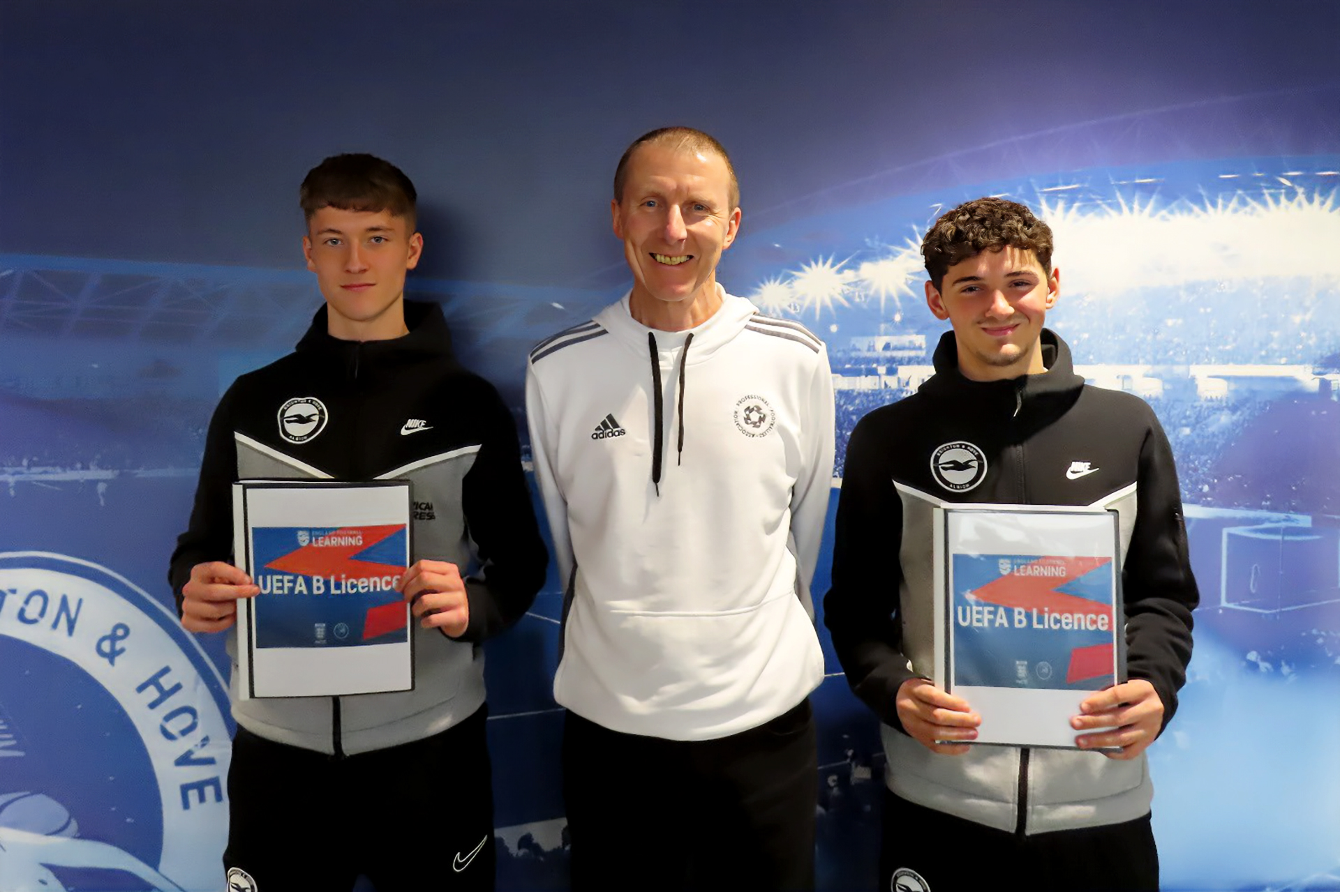 Les jeunes joueurs de Brighton Harry Mills (17 ans) et Charlie Tasker (17 ans) ont obtenu leur licence d’entraîneur UEFA B ! 🎓🧠