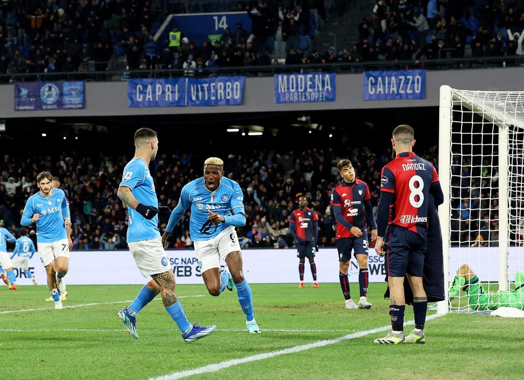 في أول مباراة يخوضها بعد تتويجه بجائزة أفصل لاعب بأفريقيا، صنع نجم نابولي النيجيري فيكتور أوسيمين الفرجة عندما سجل هدفا وصنع آخر بطريقة مذهلة ضد كالياري -السبت- في الجولة الـ16 من الدوري الإيطالي لكرة القدم.