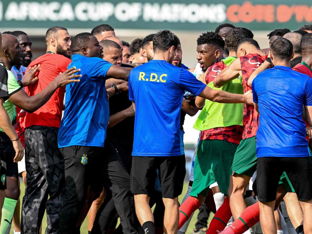 وبدأت المناوشات بعد نهاية المباراة عندما توجّه مدرب المغرب إلى قائد منتخب الكونغو الديمقراطية لمصافحته، بينما كان الأخير ينظر نحو السماء مشتكيا من “ظلم التحكيم” بعد تلقيه بطاقة صفراء قبل أن يسحب يده بقوة، ملوّحا بما معناه أن الحكم تجاهل “الفار”، ثم قام بحركة بذيئة -على ما يبدو- تجاه المدرب المغربي، الأمر الذي أشعل غضب بقية اللاعبين الذين دخلوا في اشتباكات لفظية وبالأيدي.