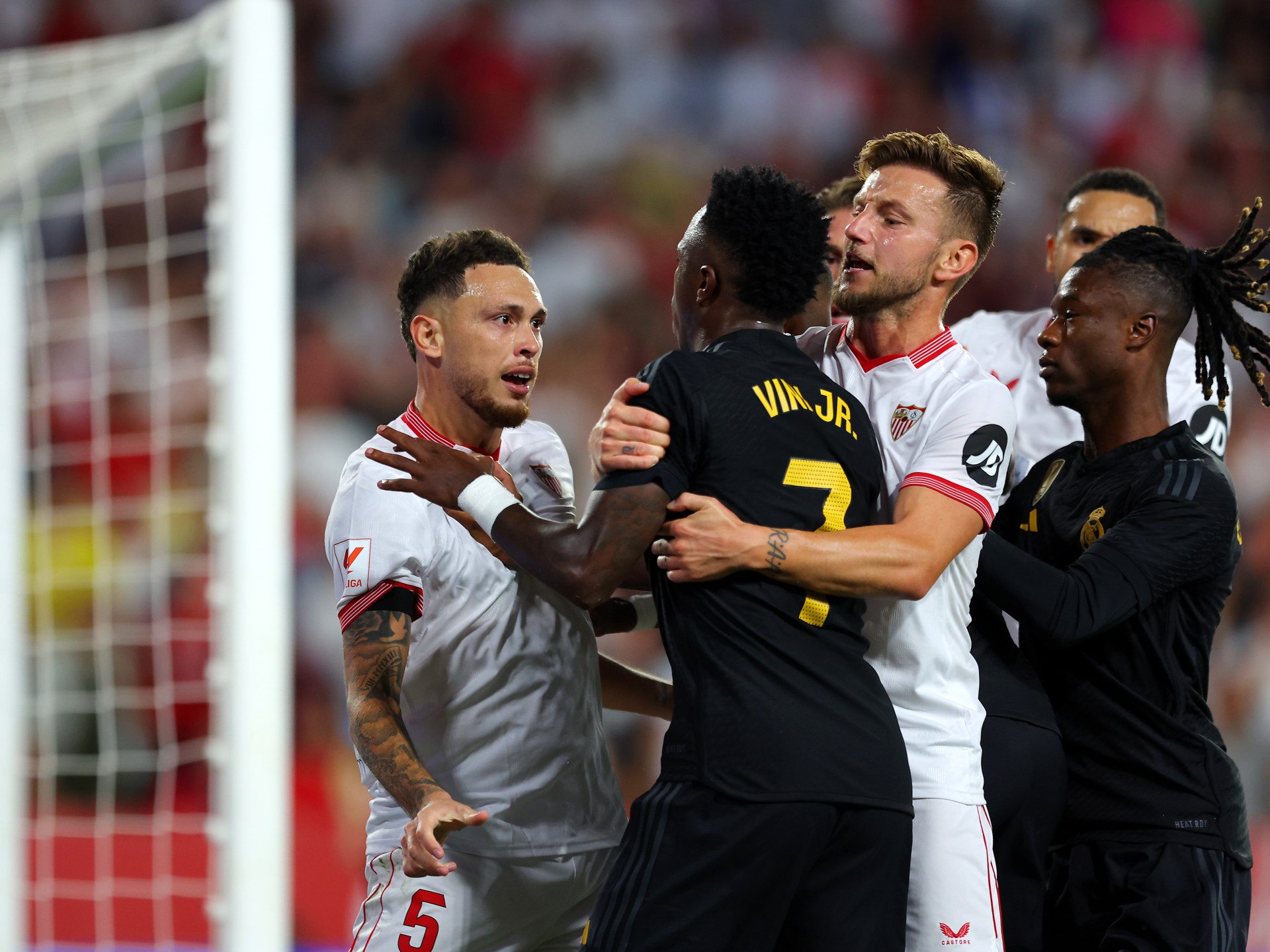 تعهد نادي إشبيلية باتخاذ إجراء ضد مشجع أُخرج من مدرجات ملعب “رامون سانشيز بيزخوان” خلال المباراة التي انتهت بالتعادل مع ريال مدريد 1-1 أمس السبت في الدوري الإسباني، بداعي توجيه إساءة عنصرية للنجم فينيسيوس جونيور لاعب “الملكي”.