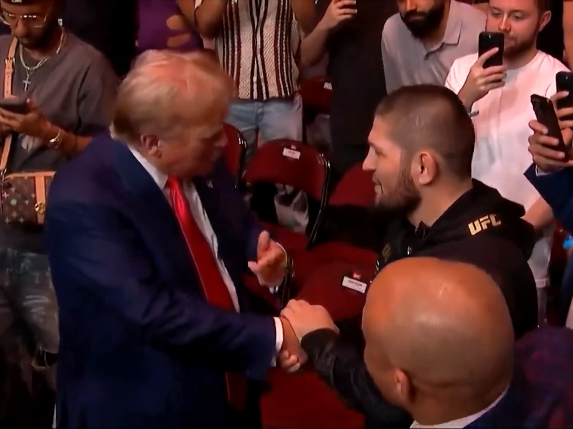 وحضر ترامب البالغ 77 عاما النزال الرئيسي الذي أقيم بمركز برودنشيال في نيوآرك بولاية نيوجيرسي، وجمع بين الروسي إسلام ماخاشيف والأميركي داستن بورييه.