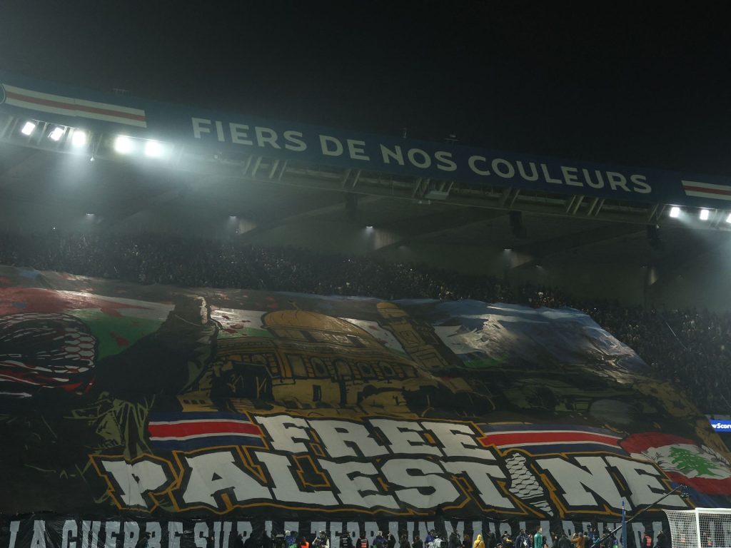 رفعت جماهير باريس سان جيرمان الفرنسي لوحة تدعم الشعب الفلسطيني الذي يتعرض لحرب إبادة إسرائيلية في غزة، وذلك خلال مباراة فريقها أمام أتلتيكو مدريد الإسباني أمس الأربعاء في مسابقة دوري أبطال أوروبا.