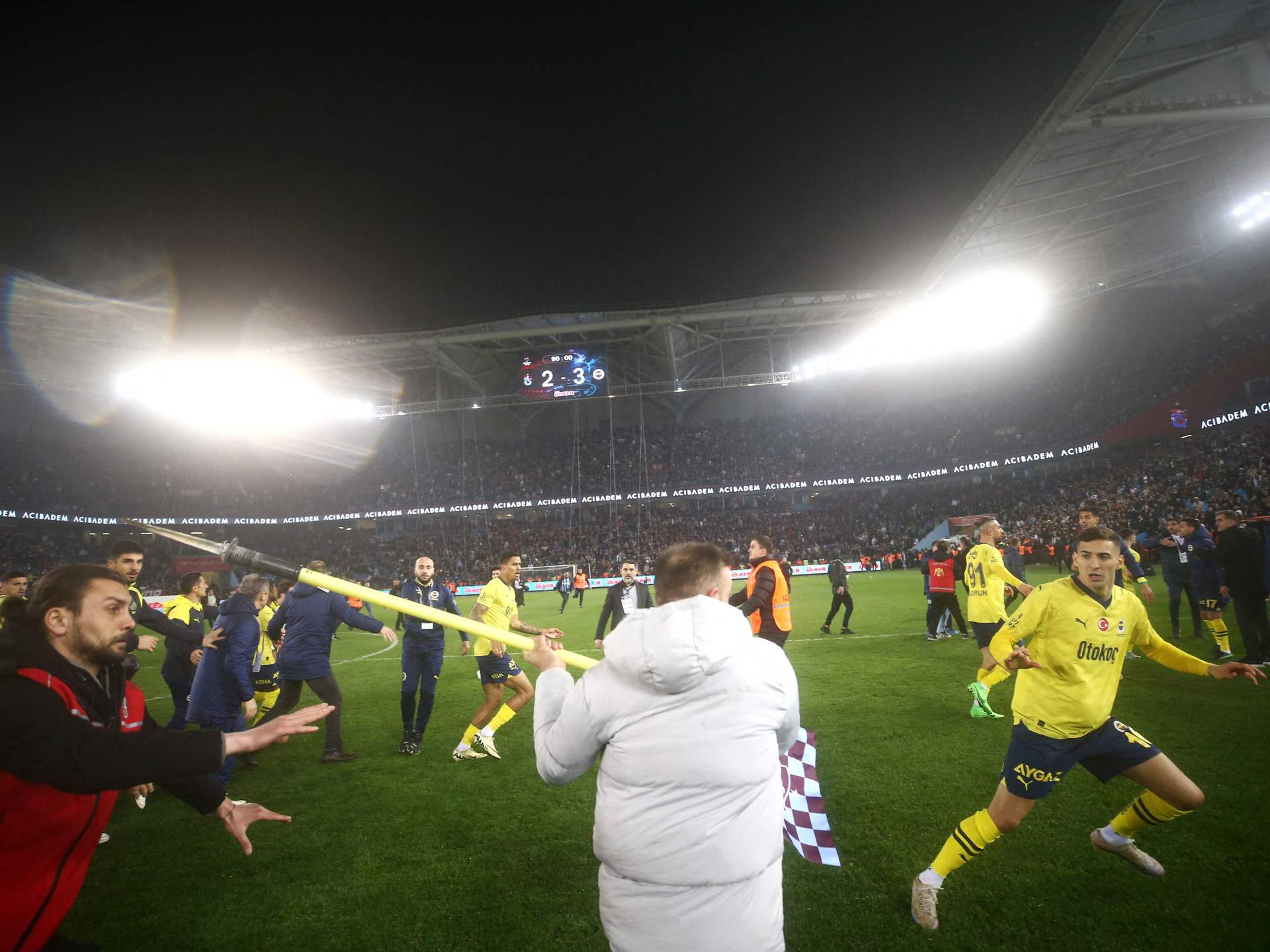 وكتب على منصة “إكس” (تويتر سابقا) “بعد مباراة طرابزون سبور فنربخشة لكرة القدم التي أقيمت هذا المساء، بدأنا التحقيق على الفور لتحديد هوية المتفرجين الذين دخلوا الملعب والتحقيق في الأحداث التي وقعت في نهاية المباراة”.