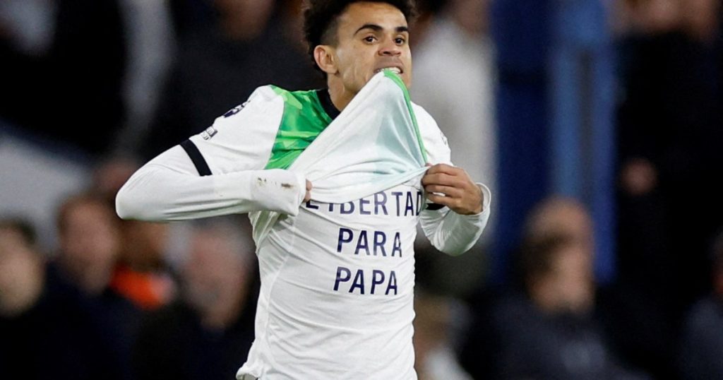 وكان دياز أنقذ فريقه من خسارة حتمية بتسجيله هدف التعادل في الوقت القاتل، وعقب الهدف كشف عن قميص كُتب عليه “حرروا والدي”.