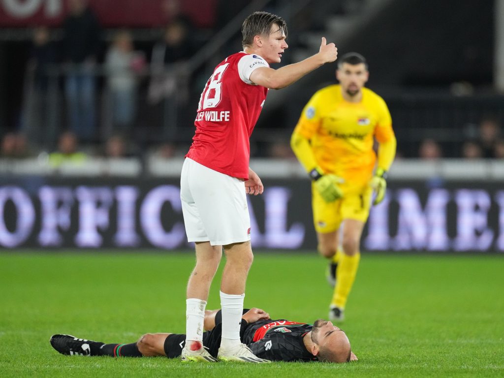 المهاجم الهولندي باس دوست سقط بشكل مفاجى في أرضية الملعب في مباراة AZ الكمار ضد نيمخين.